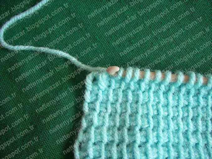 Başa dönüp yine tüm ilmekleri düz alıyoruz.Örgümüz istediğimiz uzunluğa gelene kadar düz örüyoruz.
